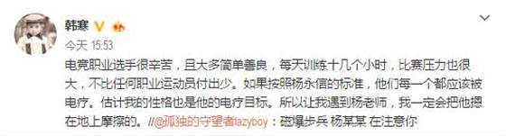 韓寒自己也表示,電競職業(yè)選手很辛苦。