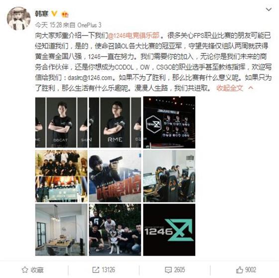 韓寒進(jìn)軍電競組建1246