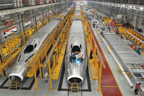 圖為中車四方股份公司高速動(dòng)車組車體生產(chǎn)線