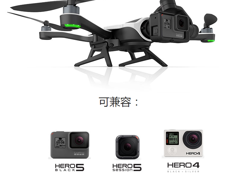 GoPro沒有像當(dāng)前無人機廠商提供一體化的解決方案,而是將無人機和攝像頭拆開了賣,而攝像頭兼容的是自家剛剛發(fā)布的Hero 5 Black、Hero 5 Session和Hero 4。